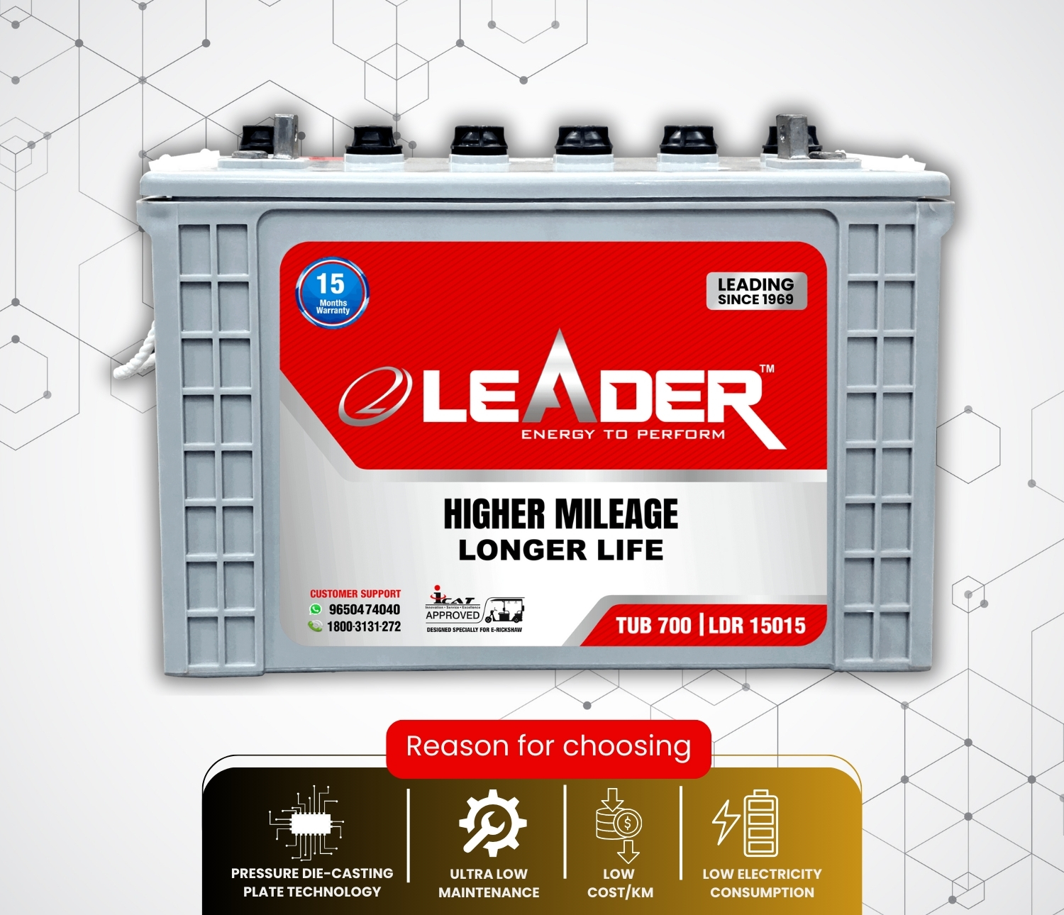 Leader E rickshaw Battery TUB 700 | LDR 15015 | 15 Month Warranty